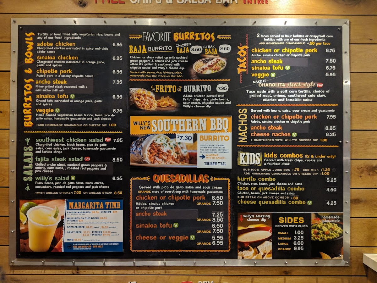 Willy's Mexicana Grill Atlanta Menu (2025 Update)
